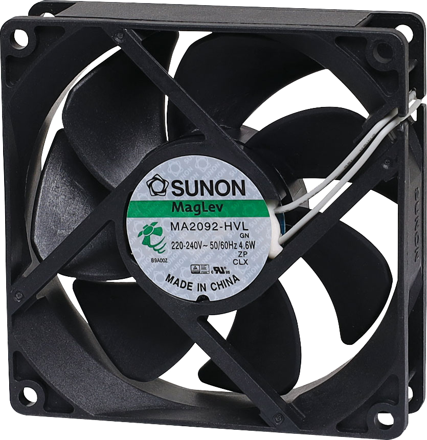 Sunon CF2092HVL-1000U-999 240V AC 92mm Maglev/Vapo Bearing Cooling Fan with thermoplastic frame. Designed for long-life and minimal noise operation. Sunon®fans are manufactured to a very high standard and hold CSA and UL listings. Altronics has been a Sunon distributor for many years and have found them to be of excellent overall quality and reliability.