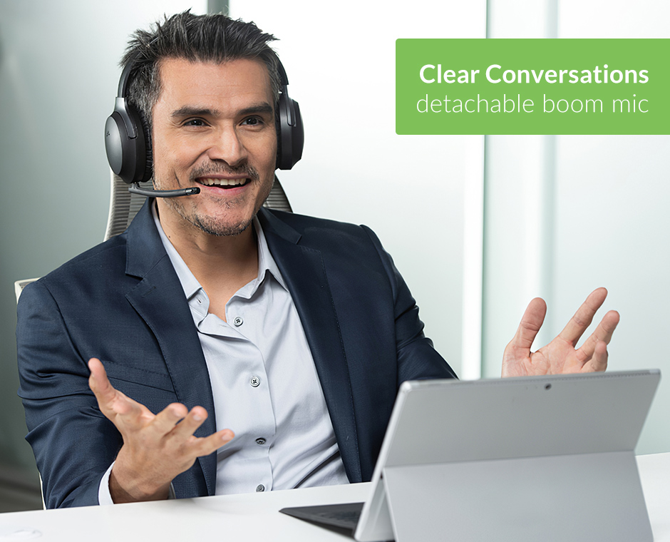 Equipped with a detachable and flexible boom microphone to enhance clarity - delivering crystal clear audio for all of your personal and professional calls.