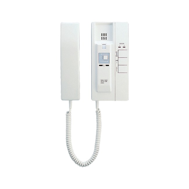 The IE-2A2DU audio handset master station which enables two door stations to be connected and a total of three handset stations to be installed.