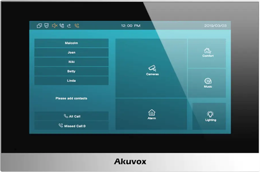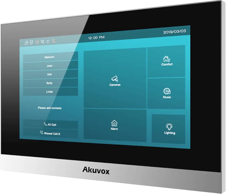 Akuvox C313W-2, 2 Wire touch screen monitor is a multifunctional communicator, with a Linux operating system, provides audio and video communication with door phones via SIP 2.0 protocol. It delivers the ultimate touch screen experience in an unobtrusive, space-saving design featuring a brilliant 7-inch capacitiv.