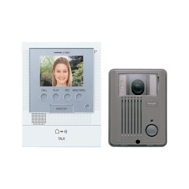 The Aiphone JF2MED colour LCD hands free video monitor provides audio and video communications with up to two video door stations. The Aiphone JF2MED is a slim style video room station that is only 27 mm thick. The JF2MED features hands free communications with the door stations and internal room stations. The Aiphone JF2MED also feature digital picture memory function as well as a audio memo function.