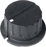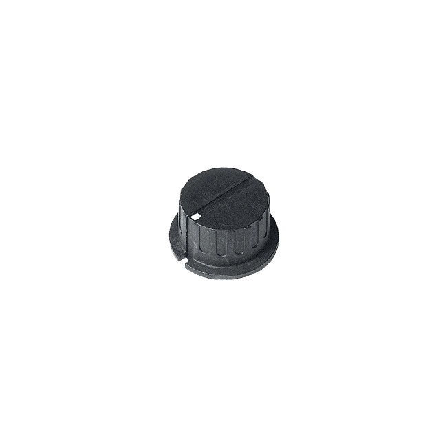 Ribbed matt black plastic knob with white position indicator in recessed grove.