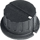 Ribbed matt black plastic knob with white position indicator in recessed grove.