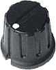 Ribbed matt black plastic knob with white position indicator in recessed grove.