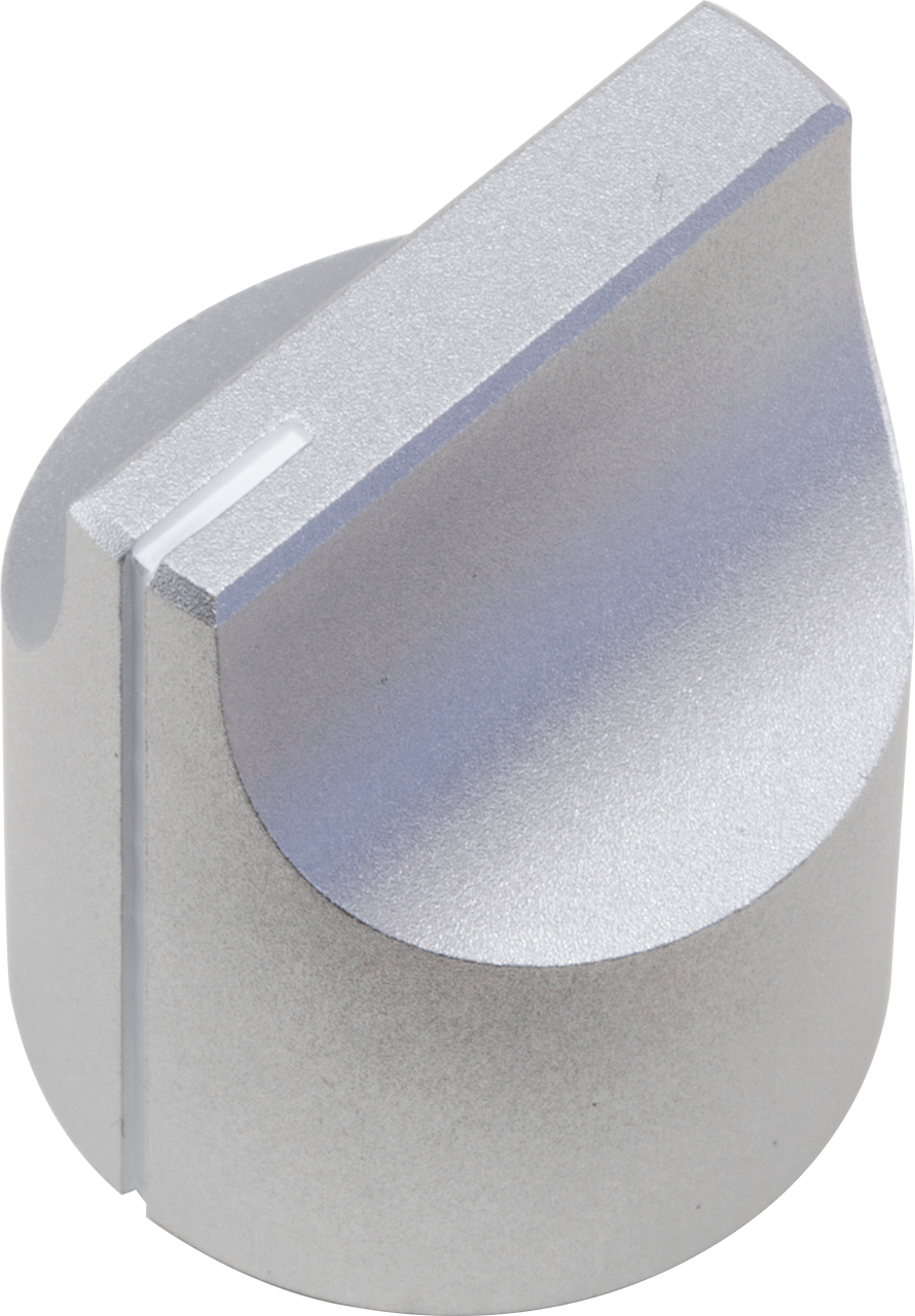 Aluminium control knob suitable for Hi Fi projects Dimensions (DxH): 16mm x 26.7mm. Colour: Silver