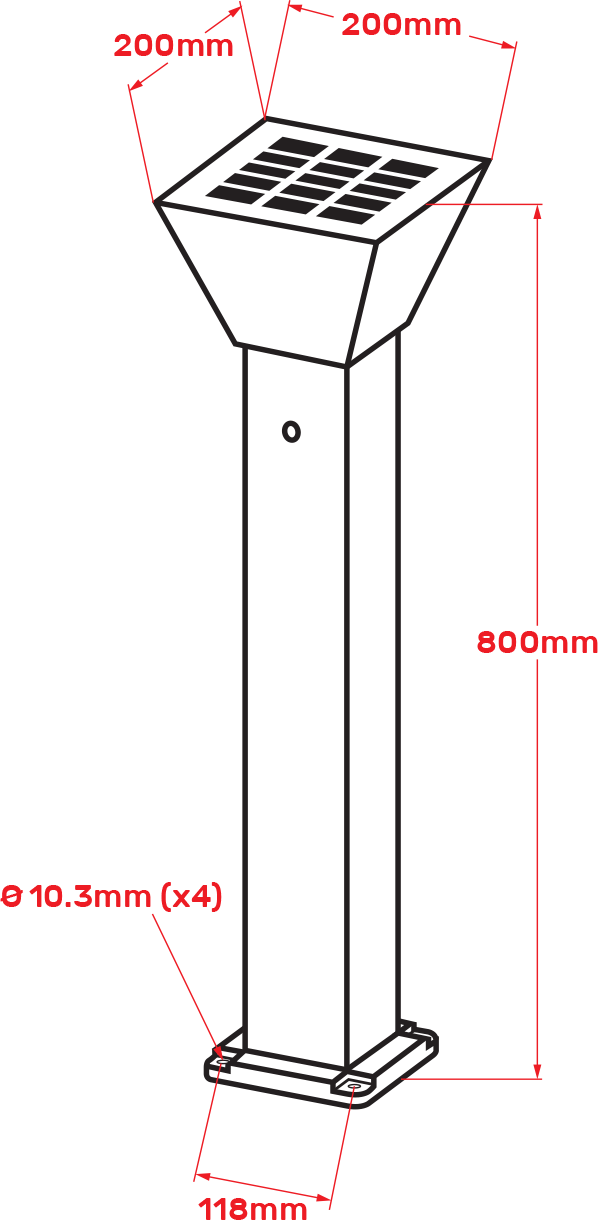 The PLSB5W-800 solar LED bollard light has a Polycrystalline Solar panel and 5AH Lithium battery.