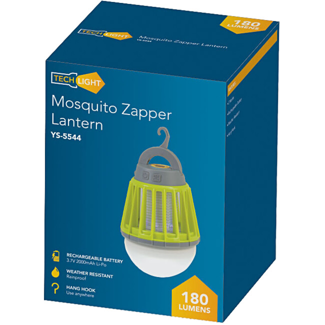 This product guarantees a good night's sleep. There is NOTHING more annoying than the sound of a mosquito hovering around your head in the dark at 2am in the morning.Now you can do something about it. This rechargeable electronic zapper measures 90mm in diameter and 130mm high. It weighs only 200 grams and features a nifty double hook to mount anywhere. The unit also features a soft white light (3light levels) which can be operated independently of the zapper.
