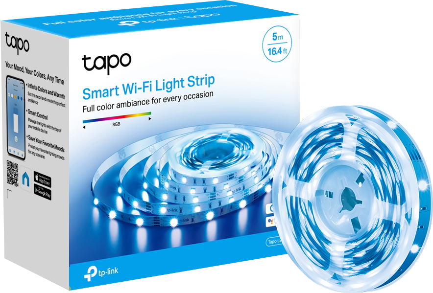 • Wind Down at Night - Install the Light Strip to relax your body and mind through a single colour, mood-setting atmosphere. • Connect It Your Way - Use it with your smart assistant, a hub, or connect directly to the Tapo App. Control the Light Strip however you want. • No Hub Required - Connect to your home’s secure Wi-Fi network. No need for a hub or extra equipment. • Flexible Installation - Cut it to whatever length you want and attach it to any surface with the 3Madhesive. • Preset for Convenience - Found your favourite lighting for watching movies? Save it as a setting you can simply select for future movie nights. • Schedule & Timer - Create schedules and count plans to turn on/off with the brightness/colour you set. • Away Mode - Simulate someone being at home to frighten away, unwanted visitors. • Voice Control - Use simple voice commands to control your light strip with Alexa or Google Assistant. GENERAL Colour Zone: Single Product Dimensions (LxWxD): 5m x 10mm x 1.6mm Certification CE Operating Temperature -15 C~ 40 C Operating Humidity 10%~90% RH, Non-condensing Weight 57 g Packaging Dimensions 144.5 x 68.5 x 119.5 mm Power Consumption 13.5 W COMMUNICATION Wi-Fi Protocol IEEE 802.11 b/g/n Wi-Fi Frequency 2.4 GHz Wi-Fi Requirements Secured home Wi-Fi connection WORKING STATUS Input voltage 220-240 V, 50/60 Hz Input Power (Actual power draw in Watts) 13.5 W Dimmable 1%-100% (via app and cloud only)