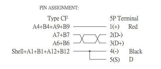 15cm USB-C socket to 5 pin terminal lead