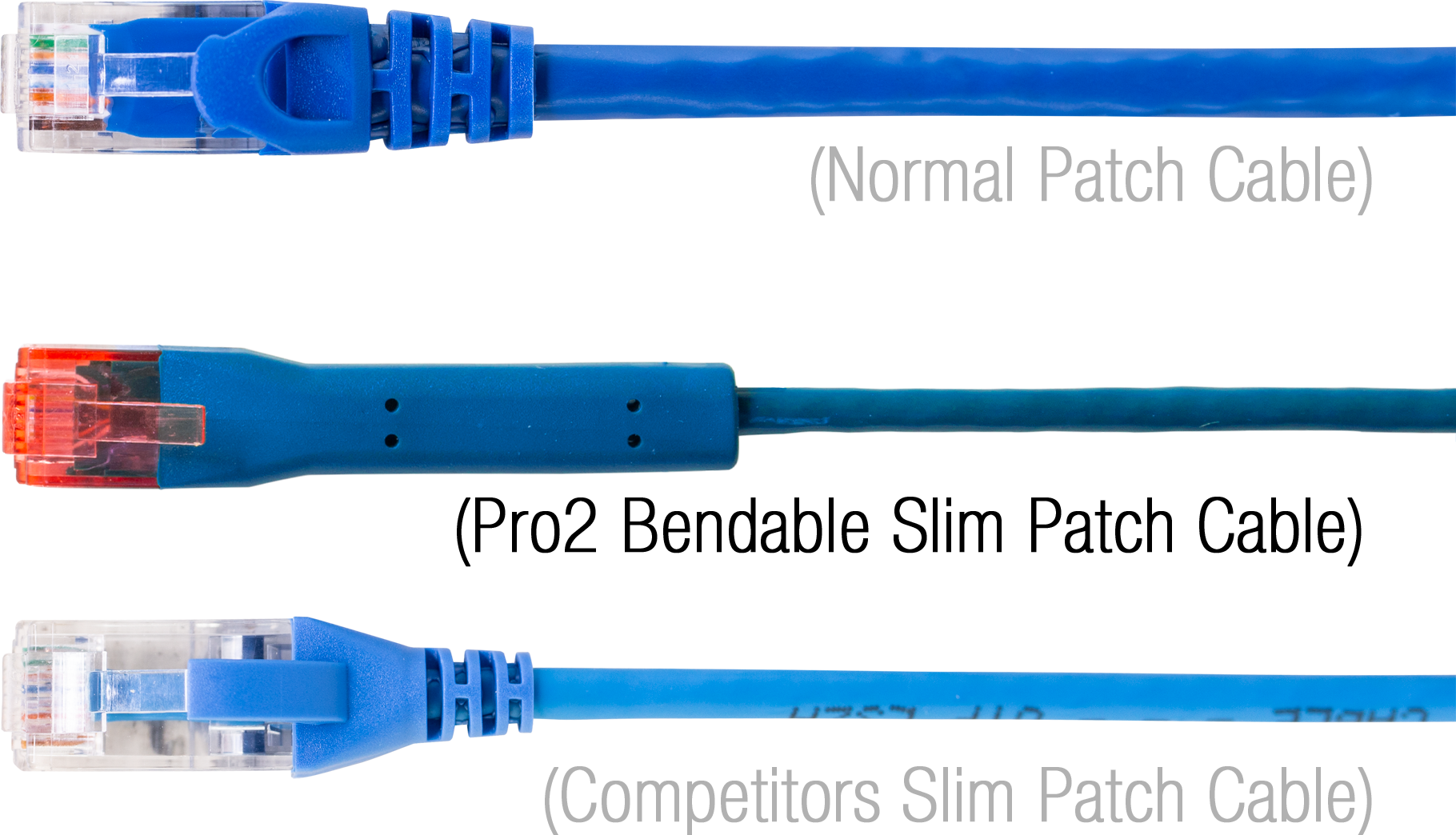 Comparison between a regular CAT6A cable and the Pro2 Ultra Thin.