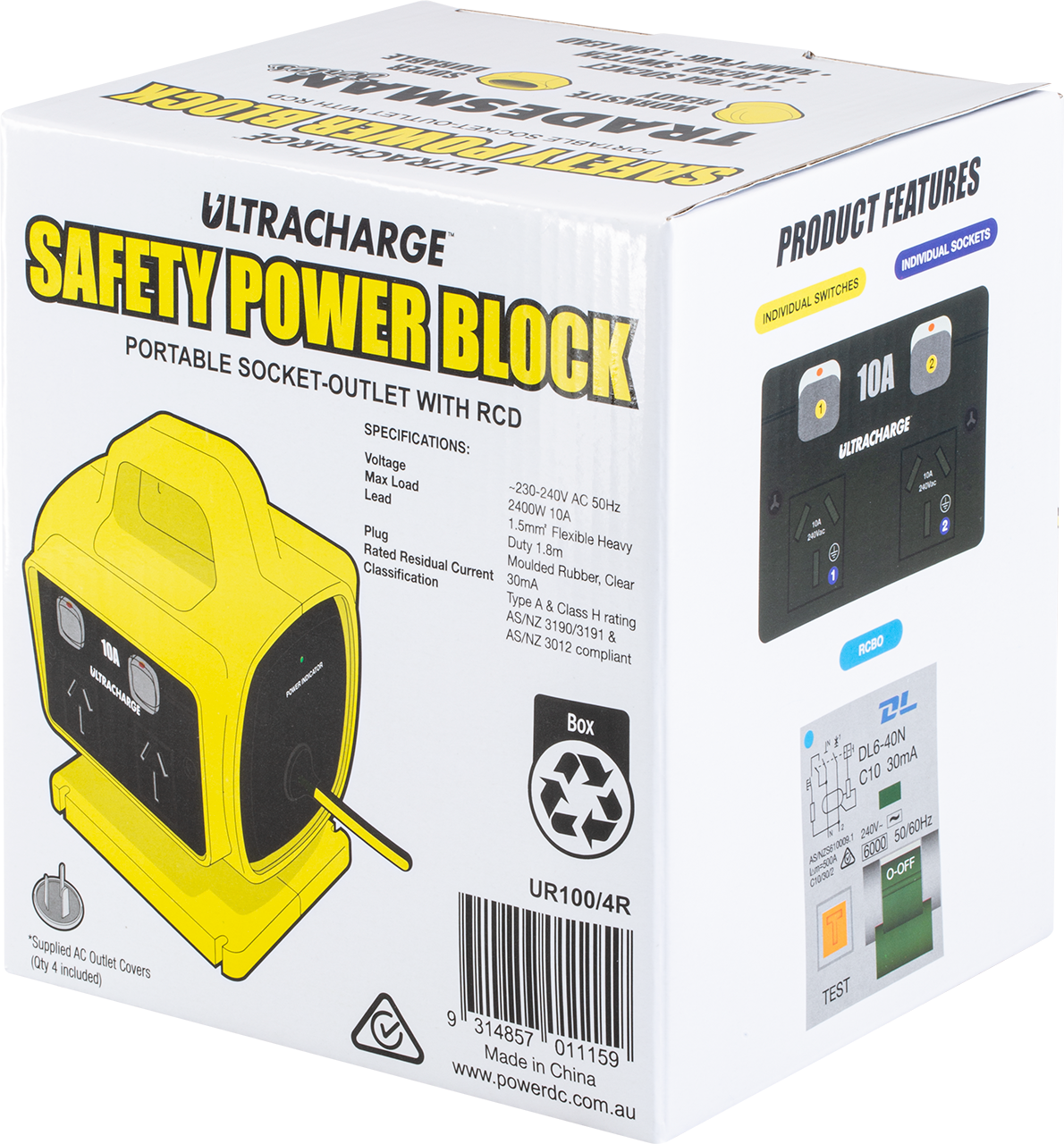 ULTRACHARGE UR100/4R - 10A 4WAY RCD SAFETY POWER BLOCK