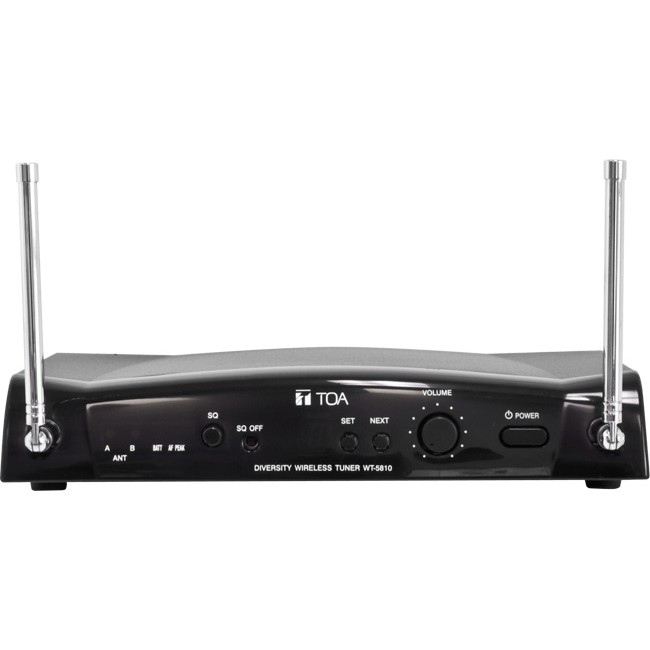 The WT-5810 is a PLL-synthesizer controlled double superhetrodyne diversity tuner designed to be used with a UHF wireless system. It employs a compander noise reduction circuit to minimize the influence of ambient RF noise.