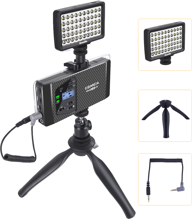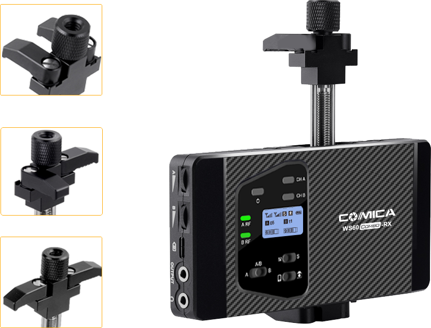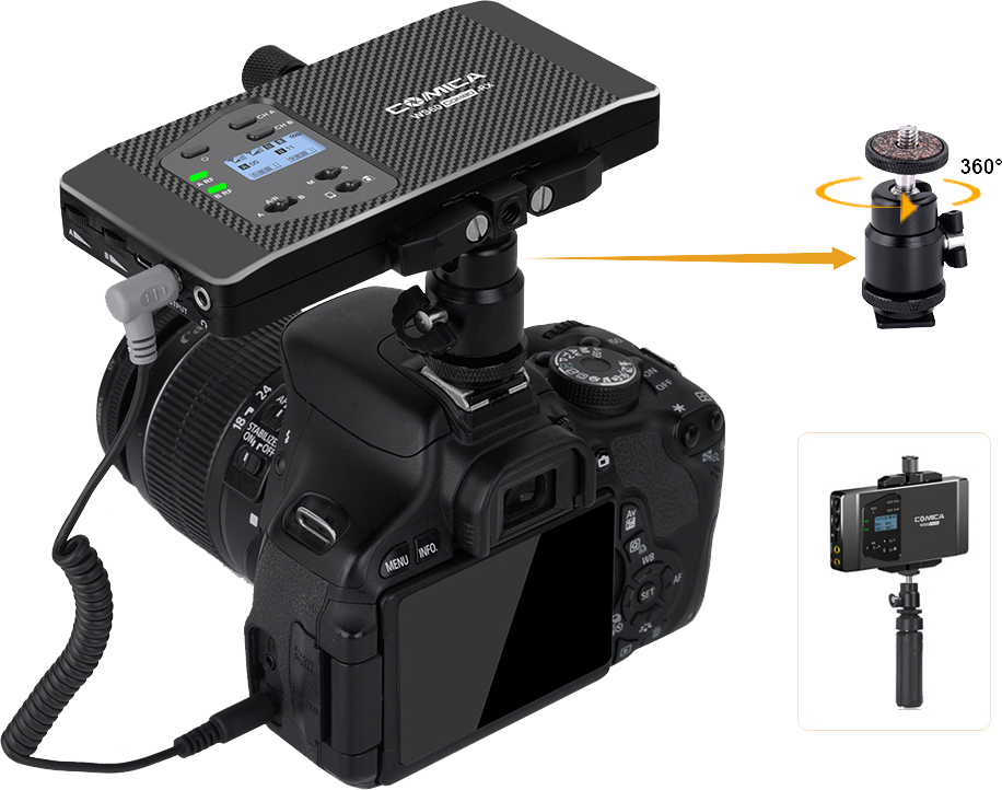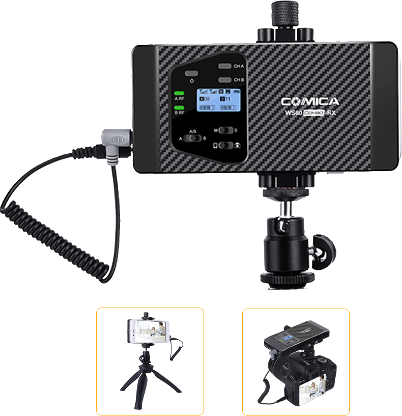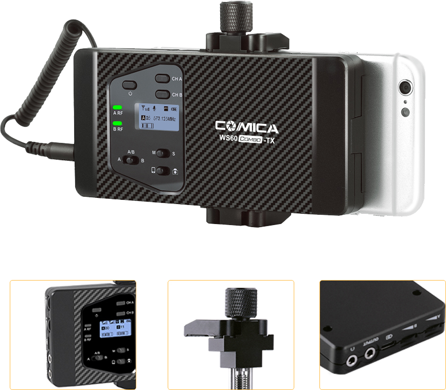 Instantly improve and upgrade your audio recordings whether you are using a DSLR or a smartphone. The receiver unit has an integrated, adjustable phone mount making it theperfect companion to getting professional quality audio on the field or in the studio.