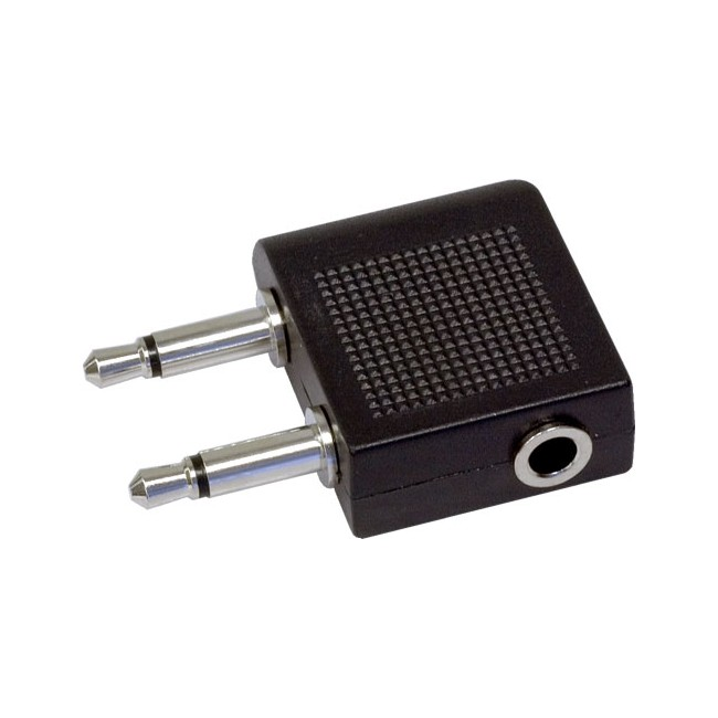 3.5mm Stereo Socket to 2 X 3.5mm Mono Plug Use your own headphones in an aeroplane 3.5mm stereo socket to 2 x 3.5mm mono plug.