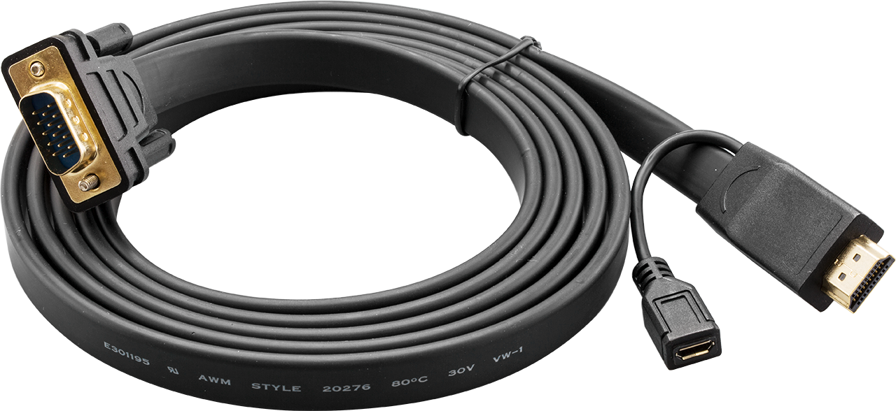 This versatile HDMI to VGA converter cable converts a digital HDMI input to analogue VGA output. The active chip inside the cable provides support for up to full HD 1080p resolution, this cable is host powered with no requirement for an external power supply and includes a micro USB connector for devices that require a bit of extra power.”.