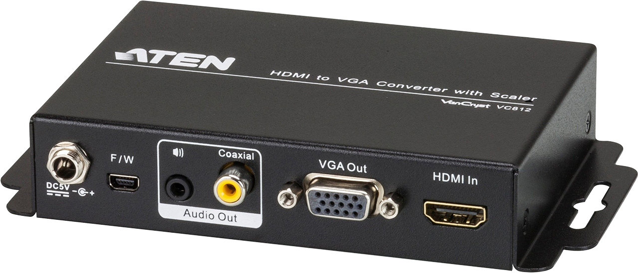 The VC812 HDMI to VGA converter with Scaler offers an easy and convenient way of converting HDMI input signals into analog video (VGA). The VC812 carries a high-performingscaling engine that converts the video resolution to give you the best image quality.