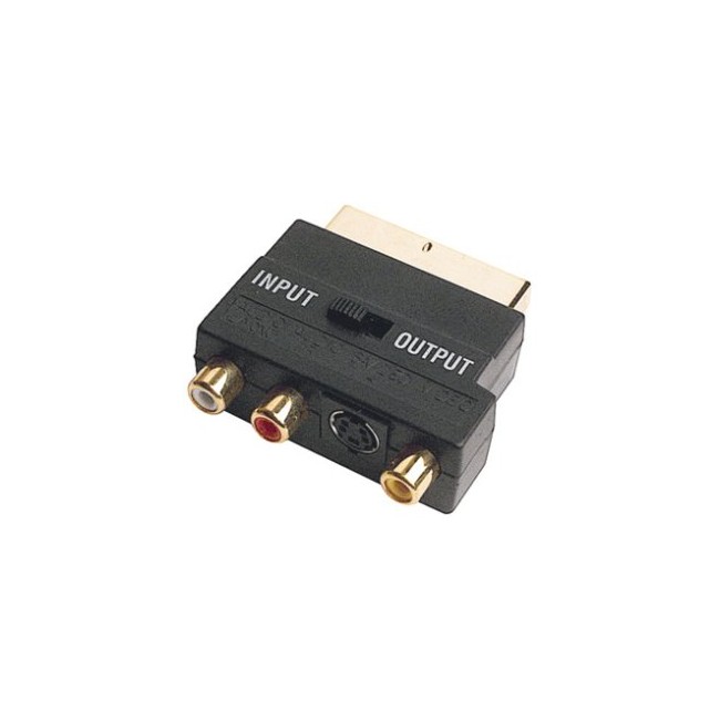 Designed to allow regular RCA, or S-Video leads to connect to a Scart socket and vice versa