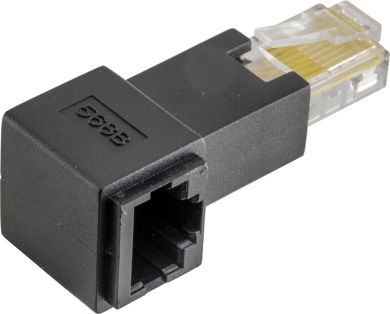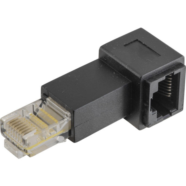 This adapter is ideal for making a straight network lan cable into a 90 degree orientation for devices placed in a limited space.