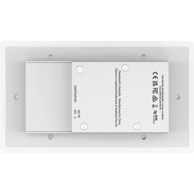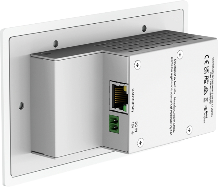 Dante® network wall plate interface for 2 x audio inputs and 2 x audio outputs