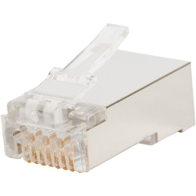 These shielded snap plugs come with copper fabric strips for bonding the shielded ethernet cable. The copper fabric strips are on removable plastic sheets for easy handling. This bonding allows the connection hardware to drain off effectively those excess electromagnetic interference (EMI/RFI) and ESD (electrostatic discharge).