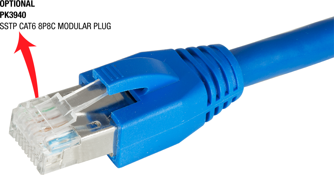 Compact, light weight and rugged design Easy to crimp with hand force CAT6a shielded modular plug connectors Not for use on standard RJ45 connectors