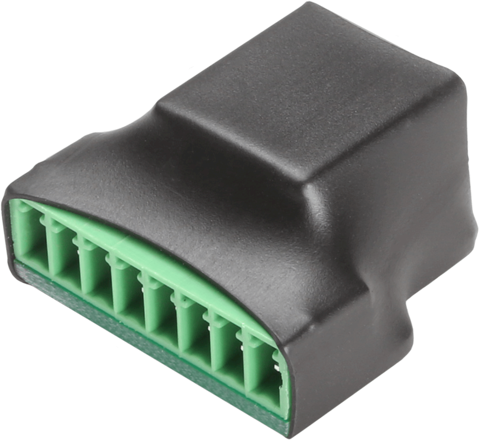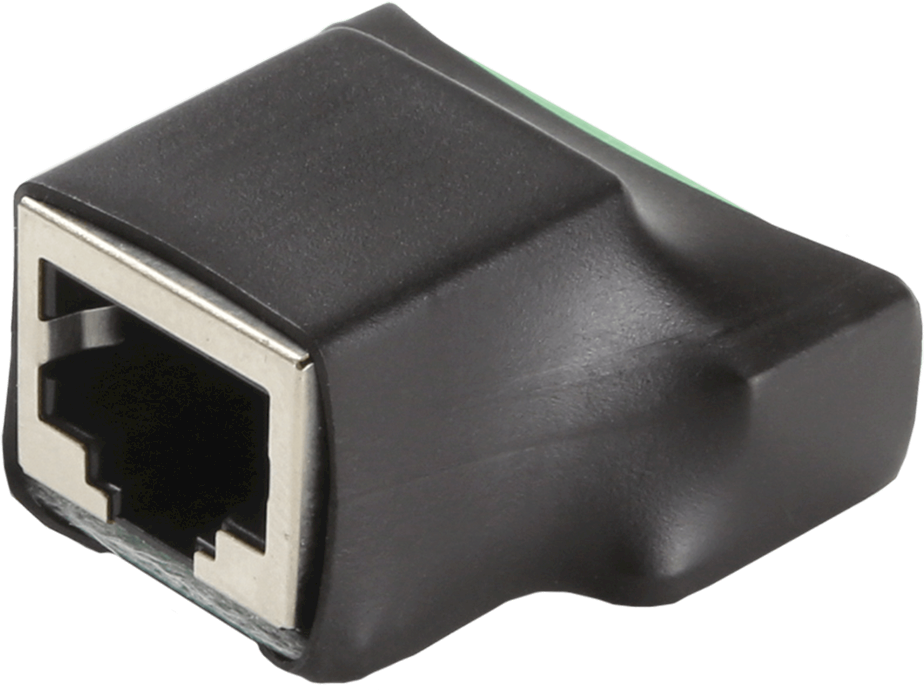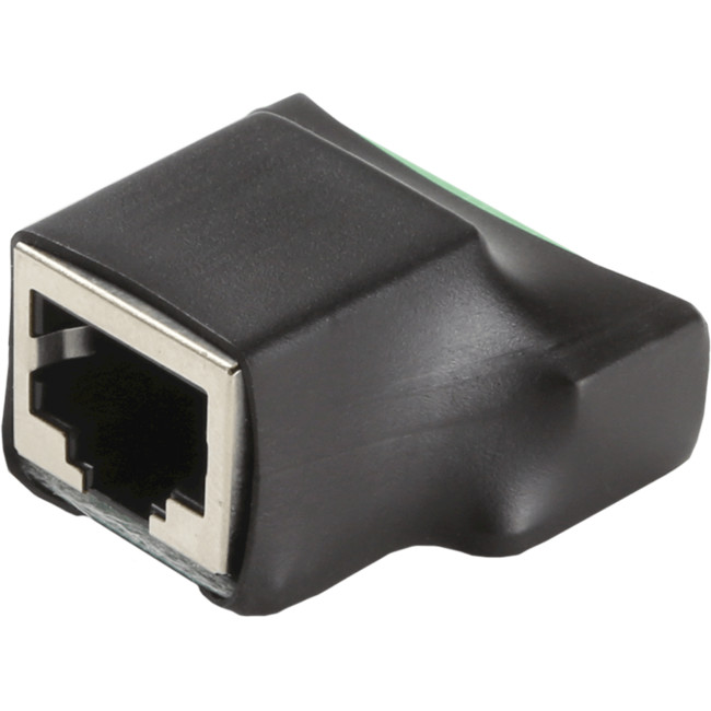 The CTA845 cable test adapter features a 8-pin terminal block connector (3.5 mm pitch) on one side and a female RJ45connector on the other side.