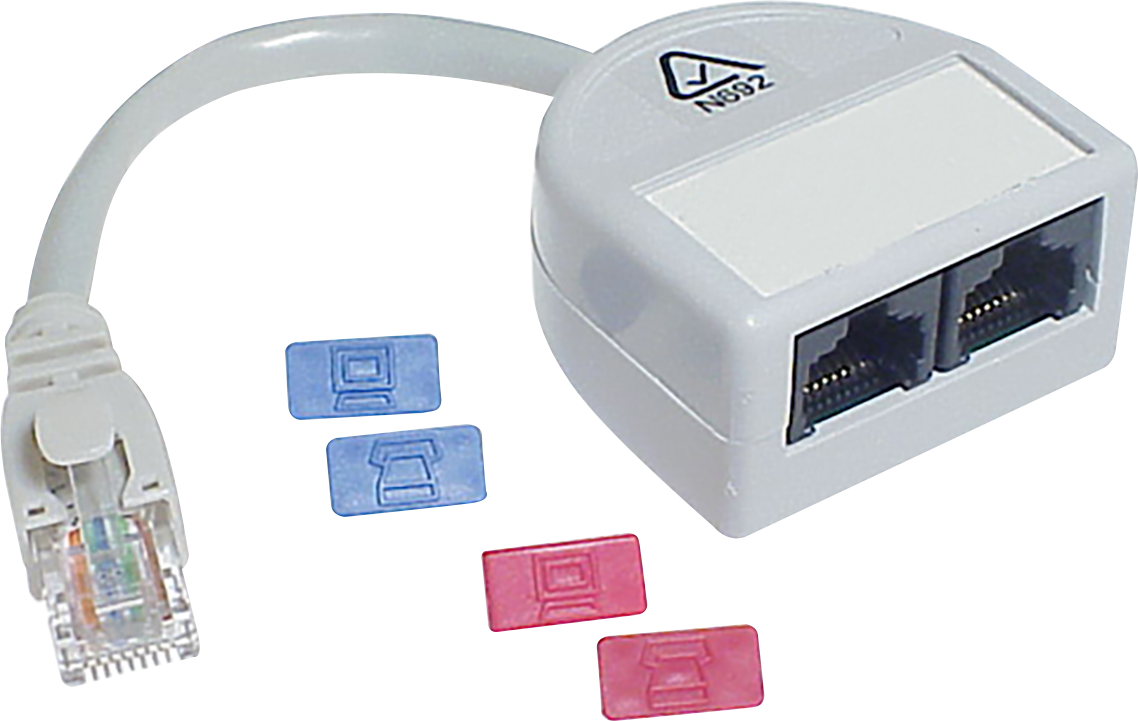 How to operate two computers using the cat5 splitter You will need two splitters, one at each end. Typically, connect the splitter to a wallplate andaseperate Cat5 cable to each computer. At the other endconnect the splitter to the other wallplate and two seperateCat5 cables to two ports of the hub/switch.