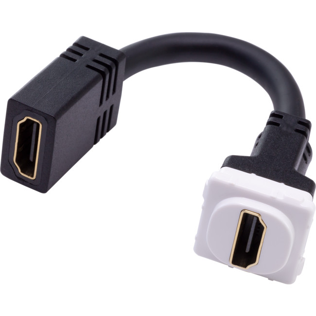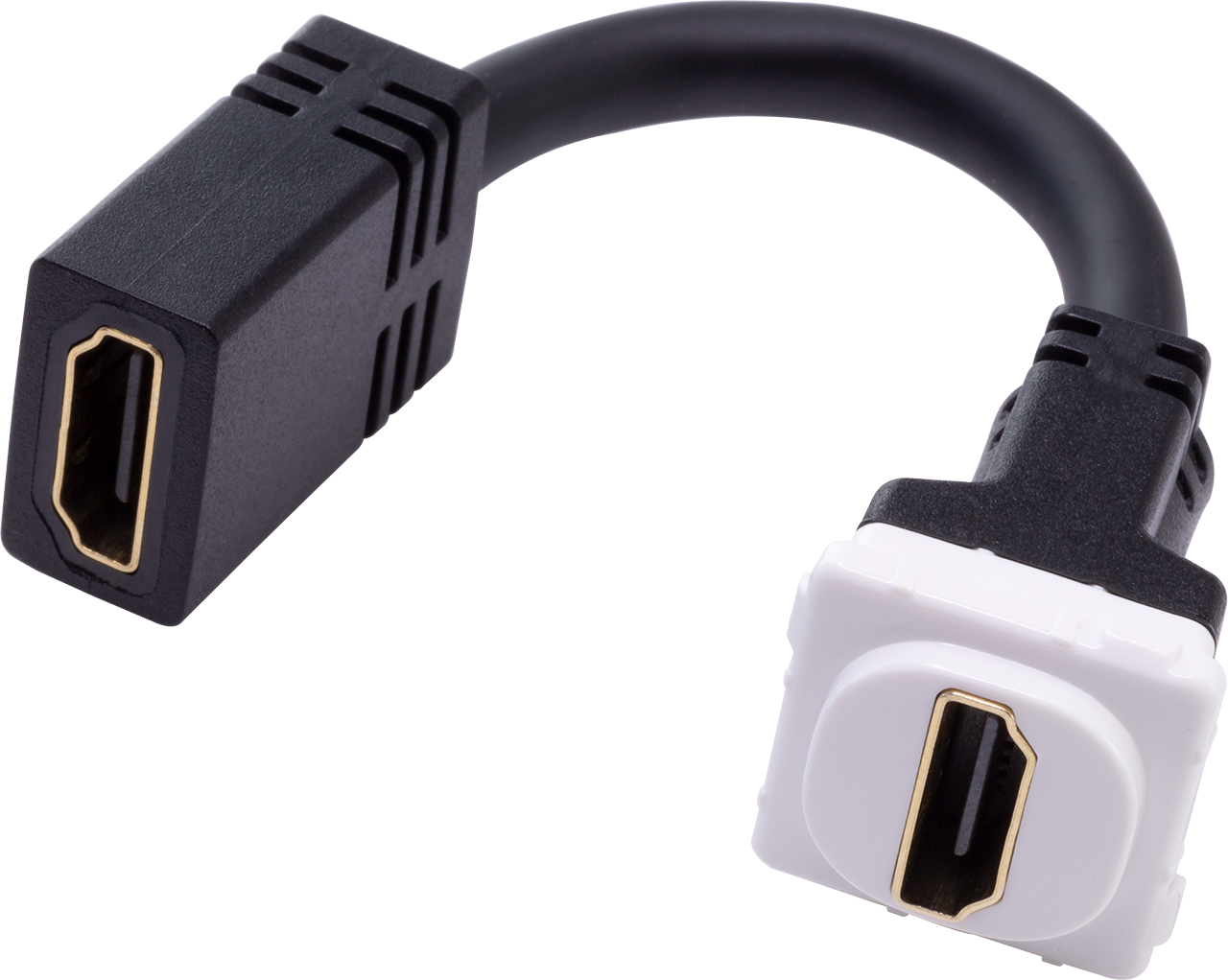 Flexible HDMI Insert to suit Clipsal blank modular wall plates. Ideal for tight spaces in wall cavities, or where cable approach makes it difficult or impossible to connect to socket. Allows cable to move and hang in its natural position without pulling out or putting unwanted pressure onthe wall plate or socket.
