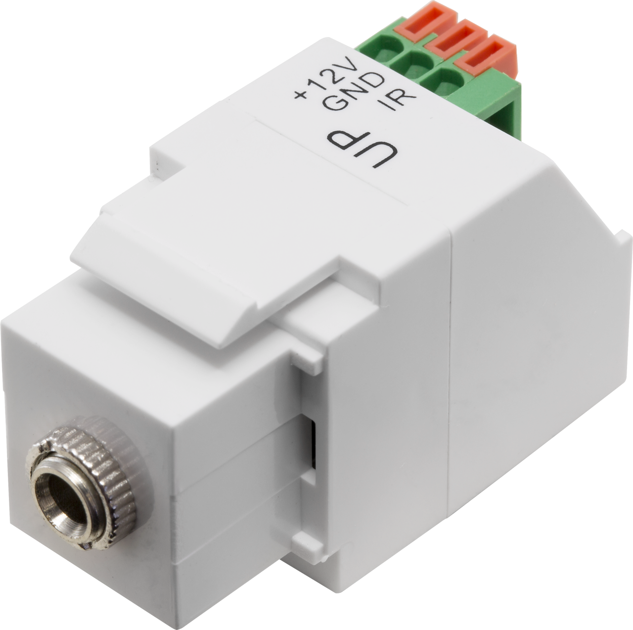 This 3.5mm keystone module snaps into standard keystone wall plates to allow you to connect external IR receiver wire into the IR control system. 3.5mm modules are easy to connect to UTP cable; simply push the terminal and insert the wire.