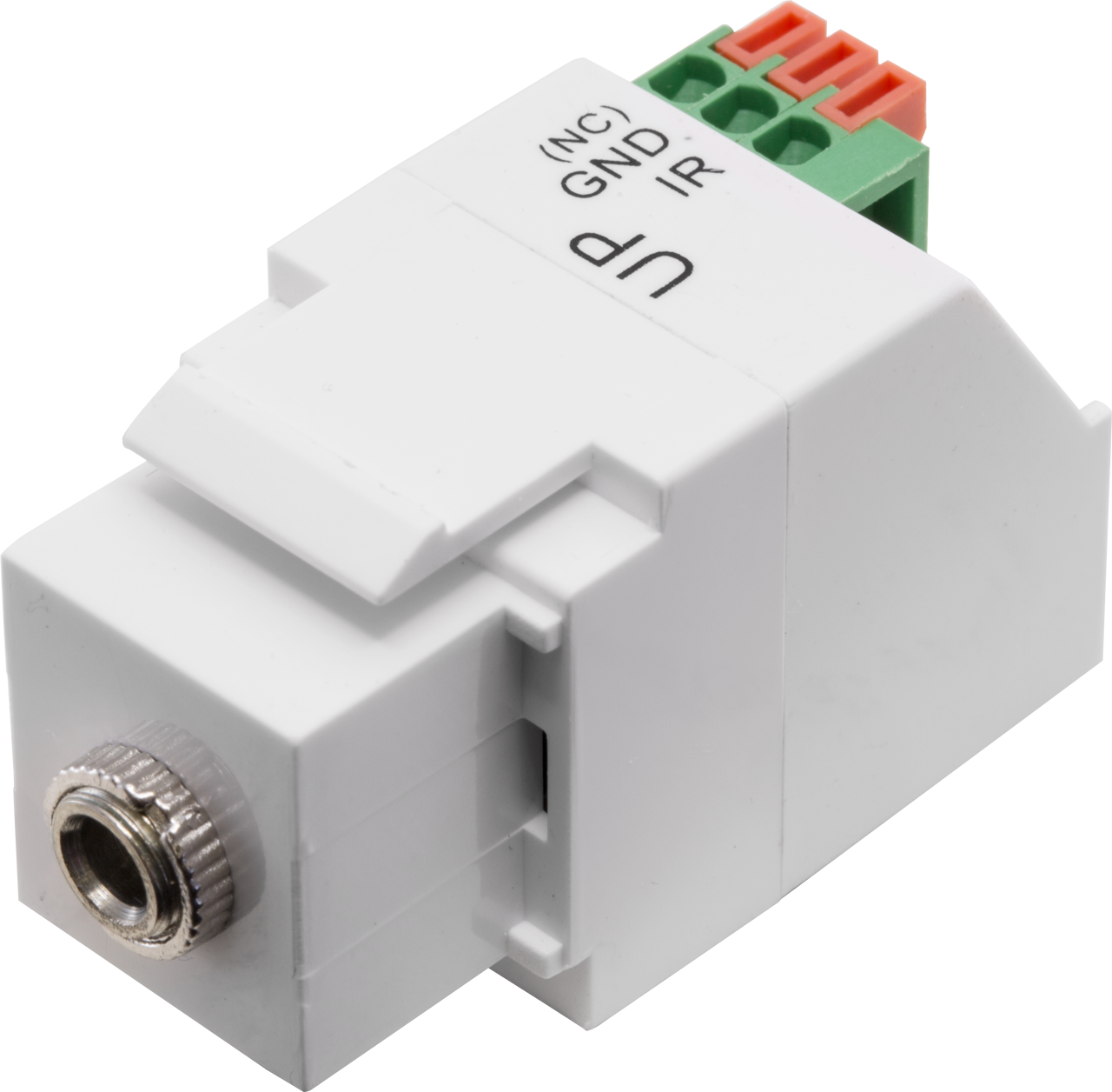 This 3.5mm keystone module snaps into standard keystone wall plates to allow you to connect IR emitter wire into theIR control system. 3.5mm modules are easy to connect to UTP cable; simply push the terminal and insert the wire.