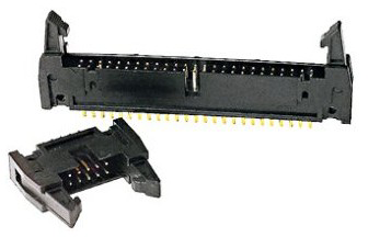 Header plugs, polarized, PCB mounting with straight pins & locking clips. 0.1" pitch for Dual row connectors.Dual row.