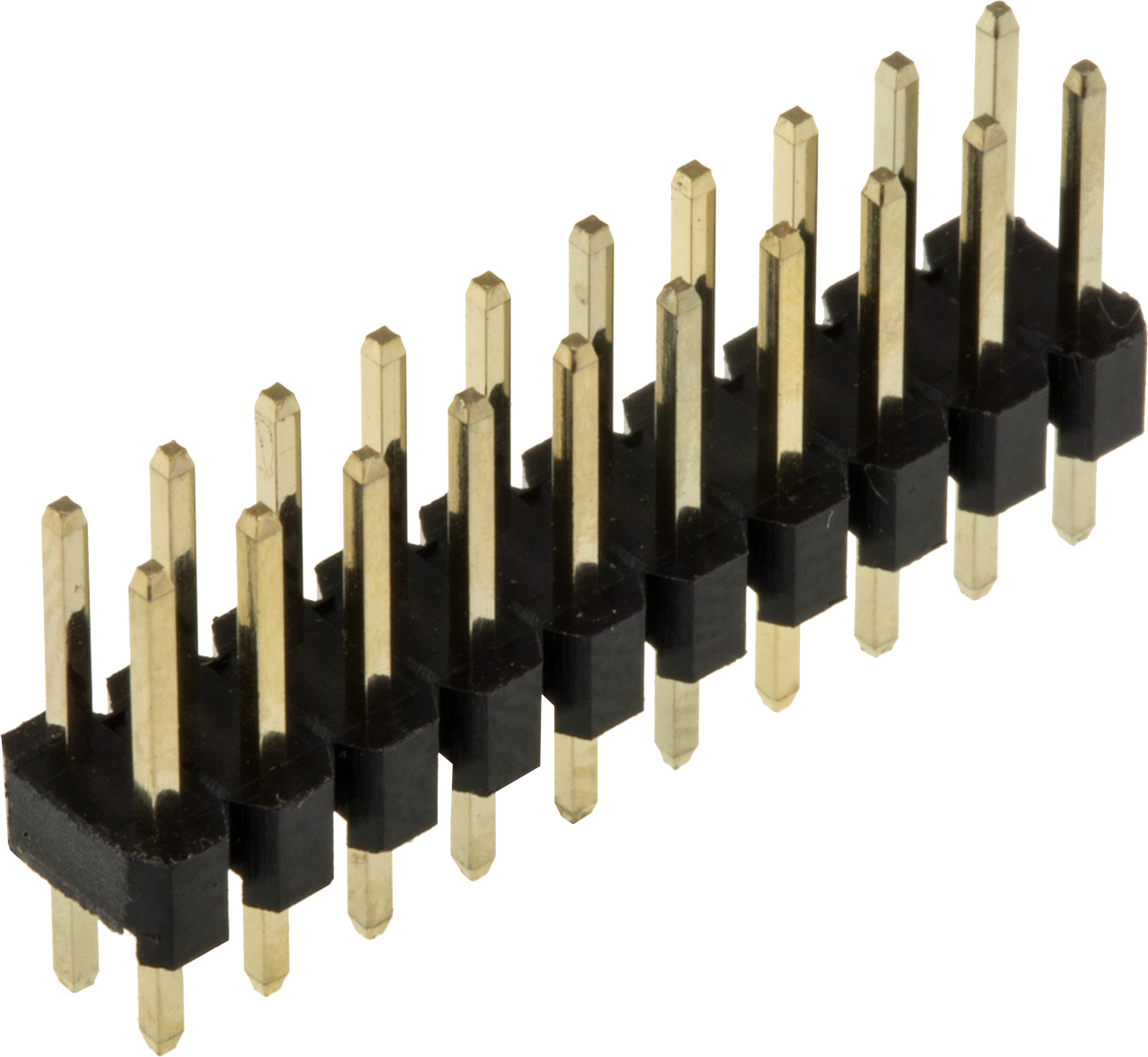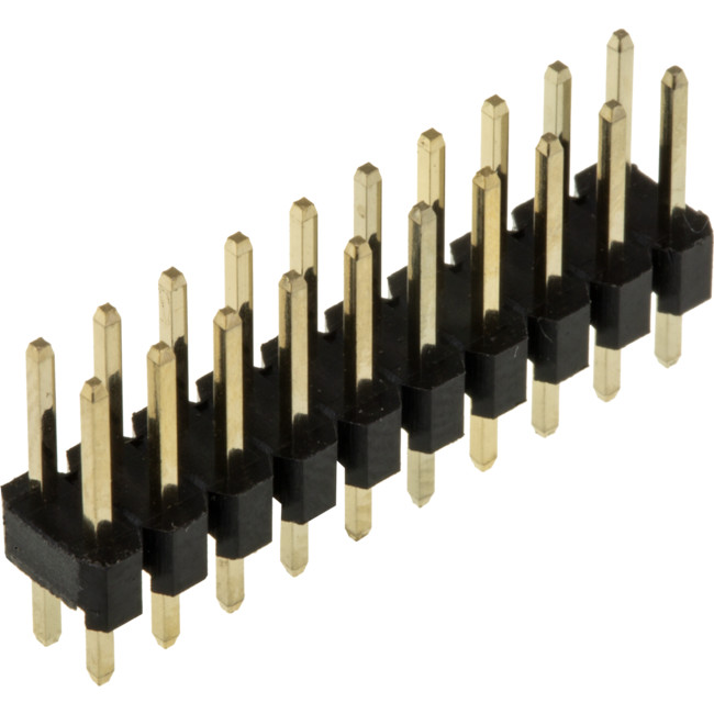 Dual row Pin Headers, pre-scored between pins, gold plated phosphor bronze contacts.