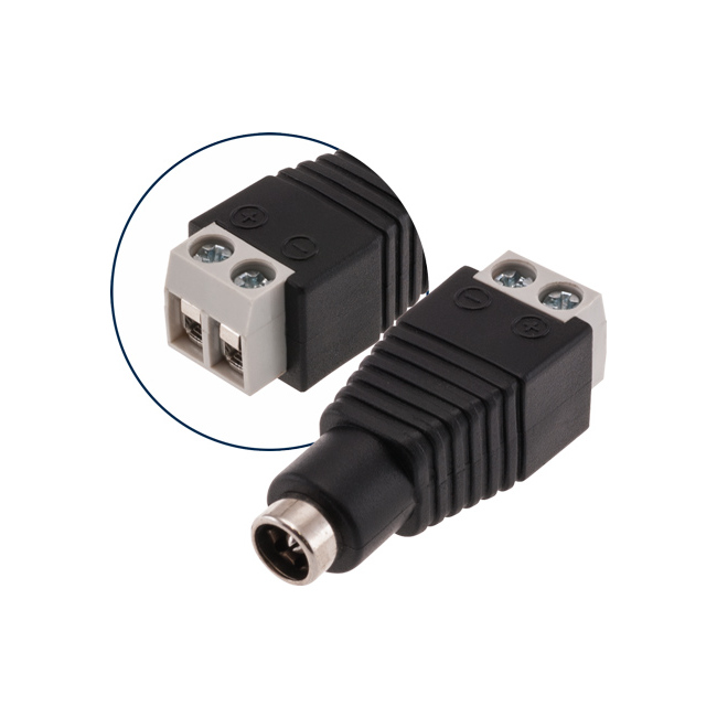 2.1mm DC Plug to screw terminals. Terminals made from non-recycled materials for longer life