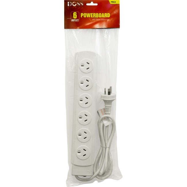 6 power outlets Master On/Off switch Surge and overload protected 1 metre lead & Right angle power plug 4 ports USB charger