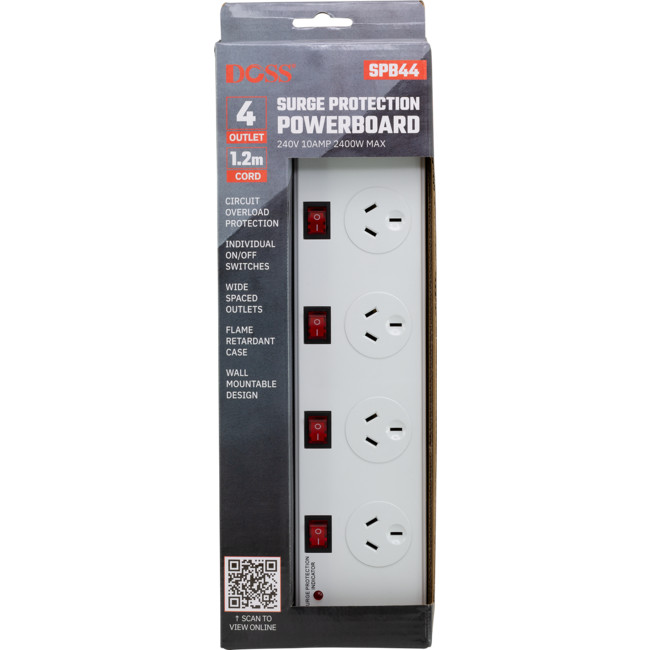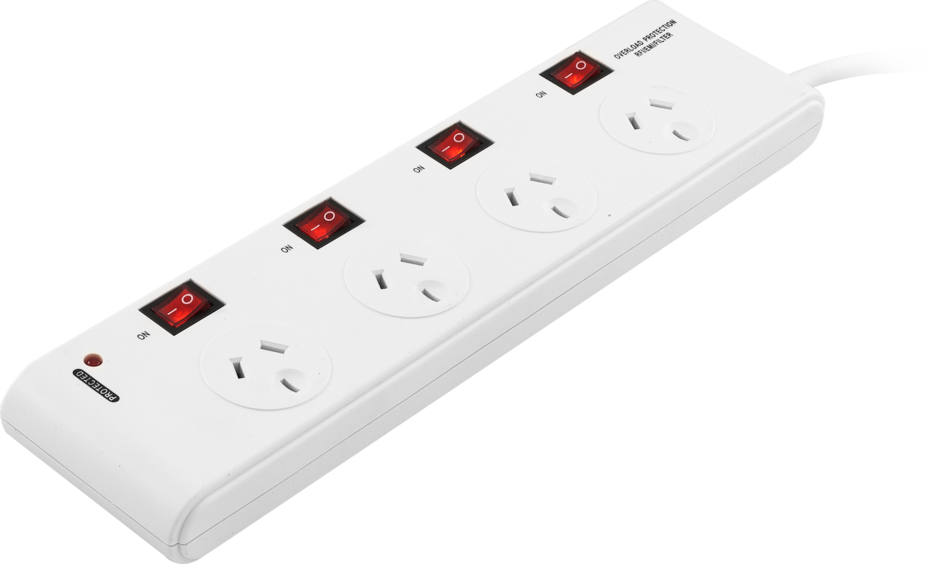 The SPB44 4 way surge protect power board has individual On/Off switches to turn individual devices completely off, saving from stand-by power.