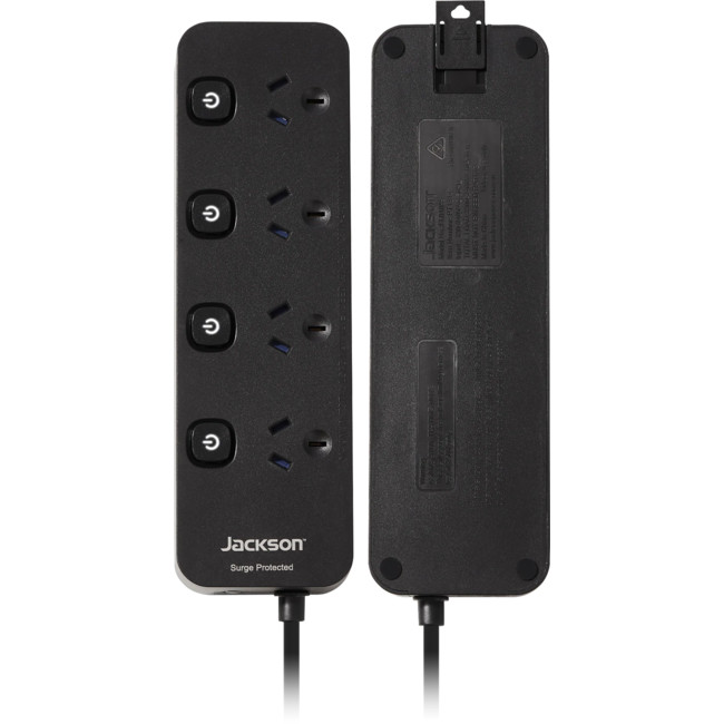 This budget model features 4 individually switched surge and overload protected outlets. Features include a black housing and a 1 metre lead with a right angled plug to fit neatly behind furniture.