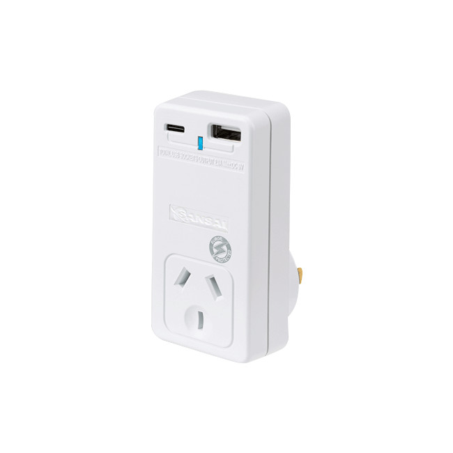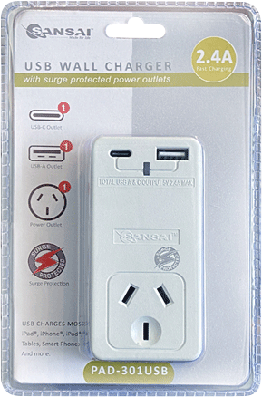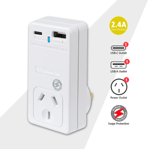 Recharge and power your USB powered devices without the need for a computer. The unit features 2 x USB charging outlets, a power status indicator and a surge protection 240V outlets.