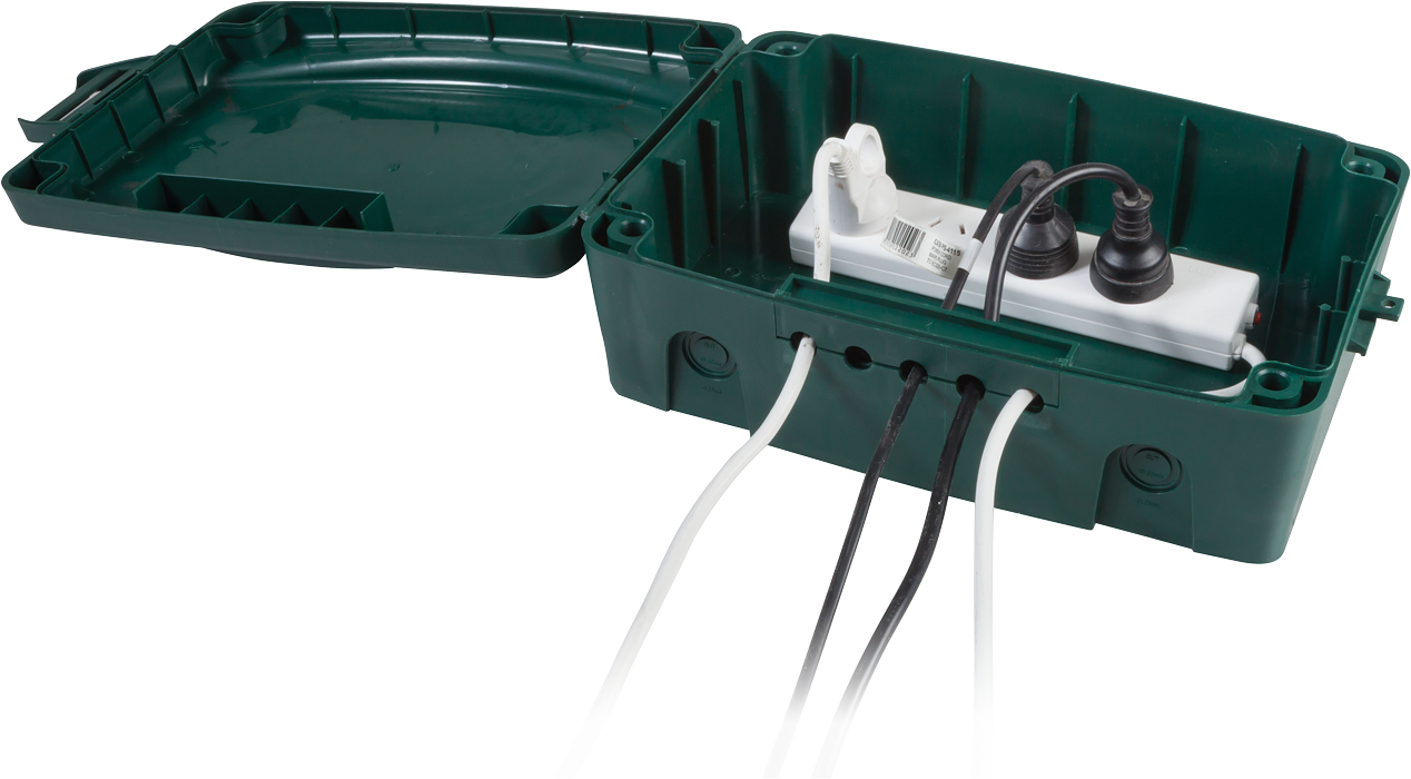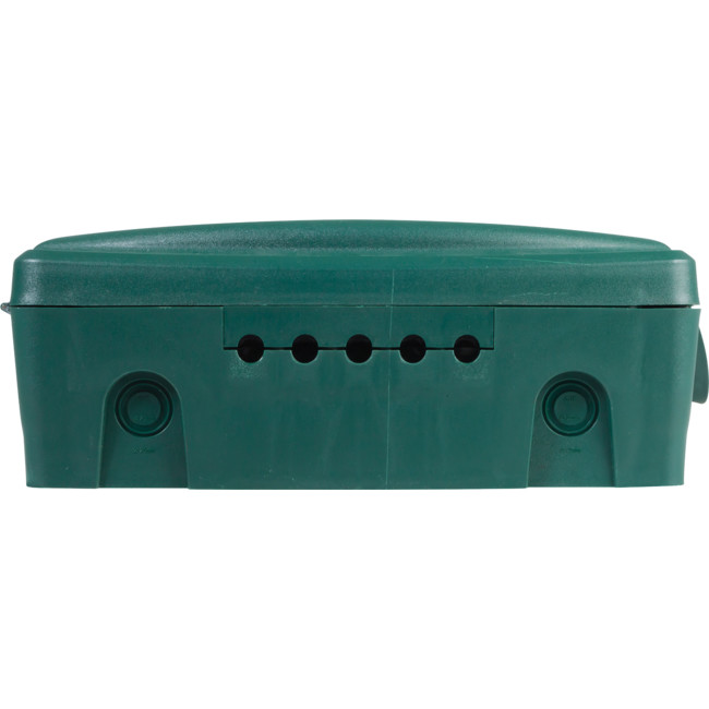 This fantastic enclosure takes your average mains powerboard and turns it into a safe, IP54 rated weatherproof power distribution system! It features a heavyduty lockable latch to keep things closed, with an o-ring seal to keep the water out. The cavity inside is around 295(W) x 180(L) x 100(D)mm, which is enough for most 4-way powerboards, and will house plugpacks for Christmas lights and garden ornaments with ease. A 5-way cable grommet is built-in (1 for powerboard, 4 for the items connected to thepowerboard). Mount it on the wall or tuck it out of the way- easy! Enclosure comes with optional drill holes for M20 or M25 Cable glands to ramp up number of devices connected to powerboard.