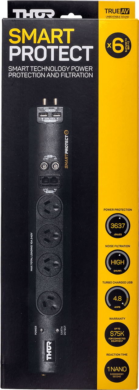 The Thor Smart Brain not only protects from surges, it also filters and cleans electrical frequency noise to give you unbeatable sound and video quality.