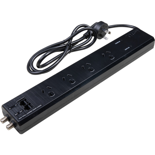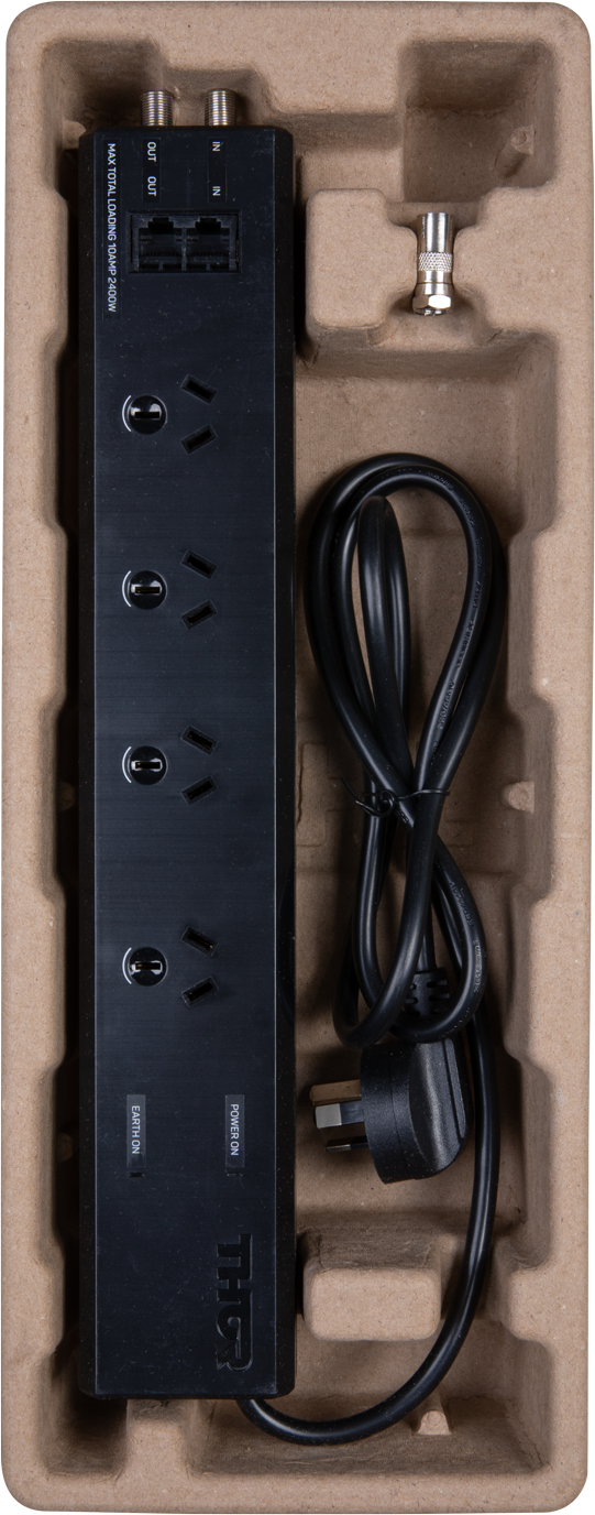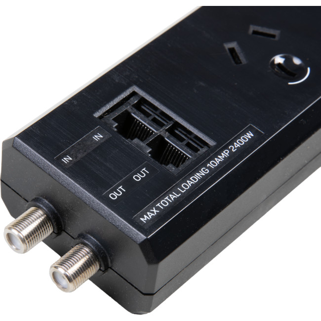 4 PROTECTED OUTLETS ANTENNA PROTECTION DATA/VOICE PROTECTION LARGE PLUG ADAPTOR
