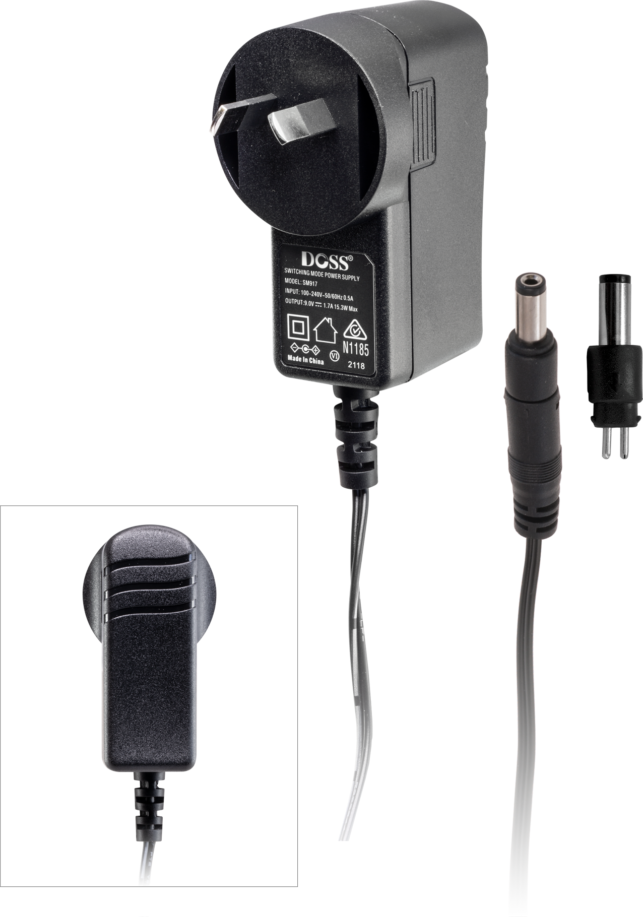 • Interchangeable tips - includes 2.1mm and 2.5mm DC plugs