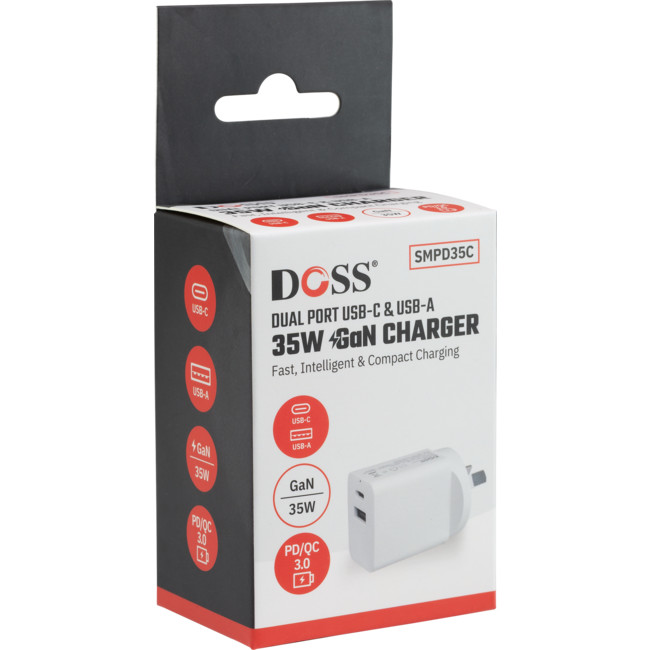 35W GAN Quick Charger with Dual Port USB-C & USB-A