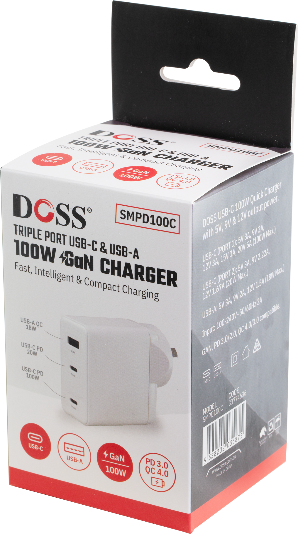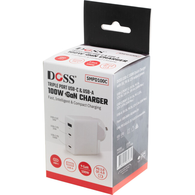 This SMPD100C charger combines maximum power with intelligent design. Its 100W USB-C output rapidly powers up your devices, while the 3-in-1 multi-port design (2x USB-C, 1x USB-A) lets you charge several devices simultaneously without sacrificing speed. Built with advanced Gallium Nitride (GaN) semiconductors, it outperforms traditional chargers by being significantly smaller, lighter, and more energy-efficient, all while running cooler to the touch. Your devices charge intelligently and safely thanks to automatic device detection, overcharge prevention, and a trickle-charge mode. The compact body is engineered with a heat-dissipating gel to manage temperatures during high-power use, ensuring longevity. With support for PD 3.0 and QC 4.0 protocols, it's the universal charging solution for all your laptops, smartphones, and tablets.