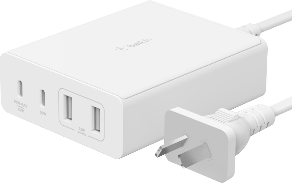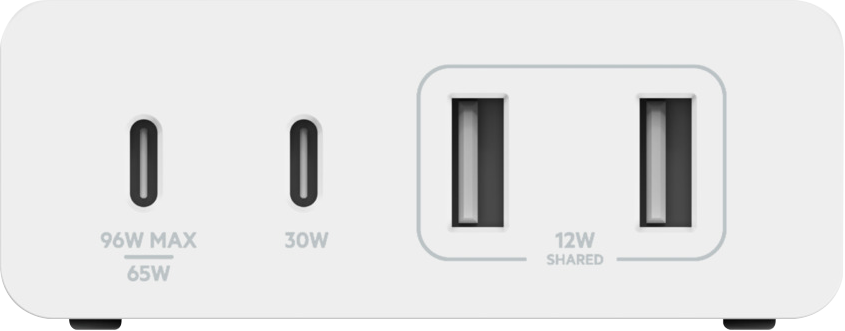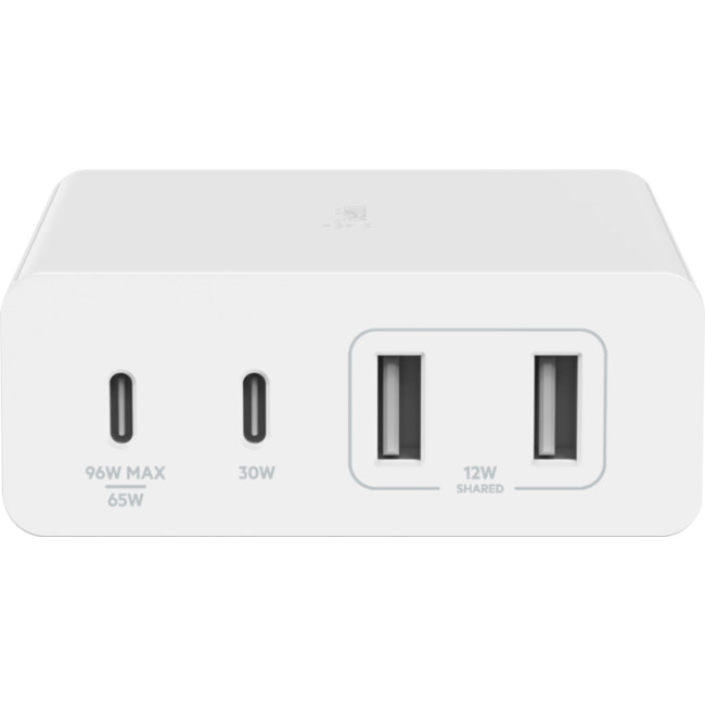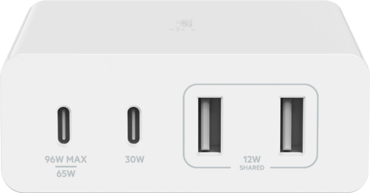 GaN Charging Technology Features integrated GaN technology for a safe and efficient high wattage charging experience. 108W of combined power to charge up to 4 compatible devices through its 2x USB-C and 2x USB-A ports.