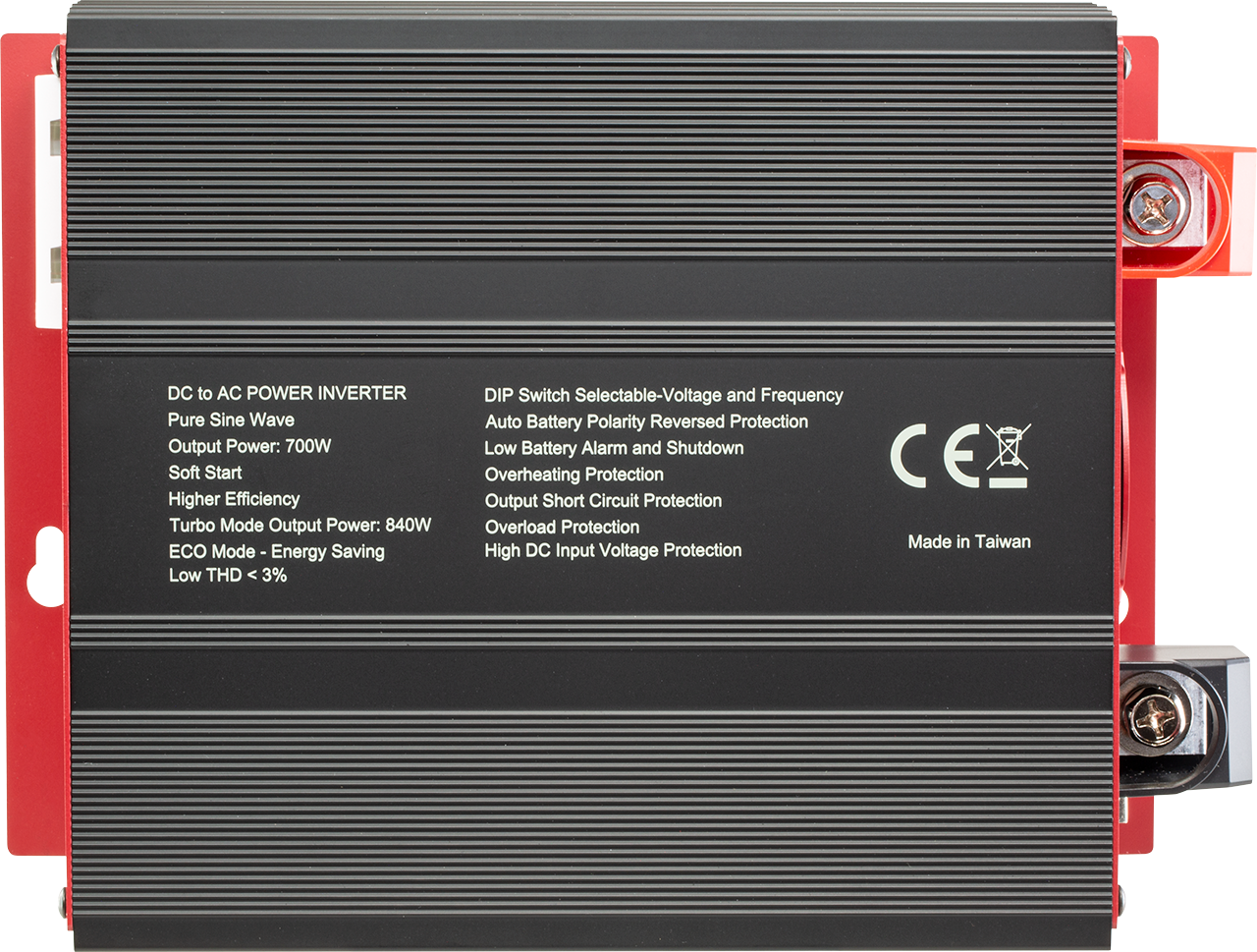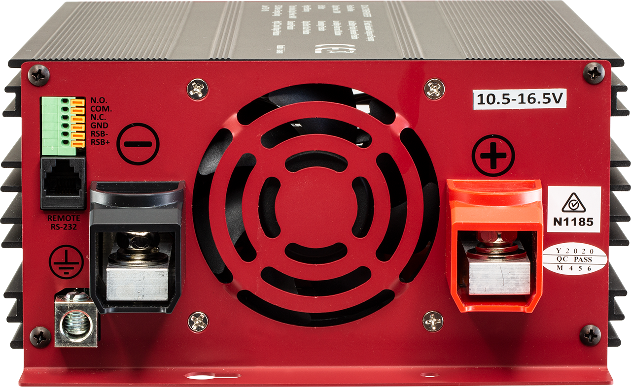 This is a state-of-the-art DC to AC pure sine wave power inverter. With advanced digital signal processing technology, the power inverter has multiple functions such as power turbo mode, power-saving mode, adjustable output voltage / frequency, fan speed control etc. The power inverter has outstanding protection included input DC polarity reversed protection, input DC over/under voltage protection, internal over-temperature protection, overload protection and output short circuit protection. With RS232 communication port, it can be easily monitor the status of the power inverter.