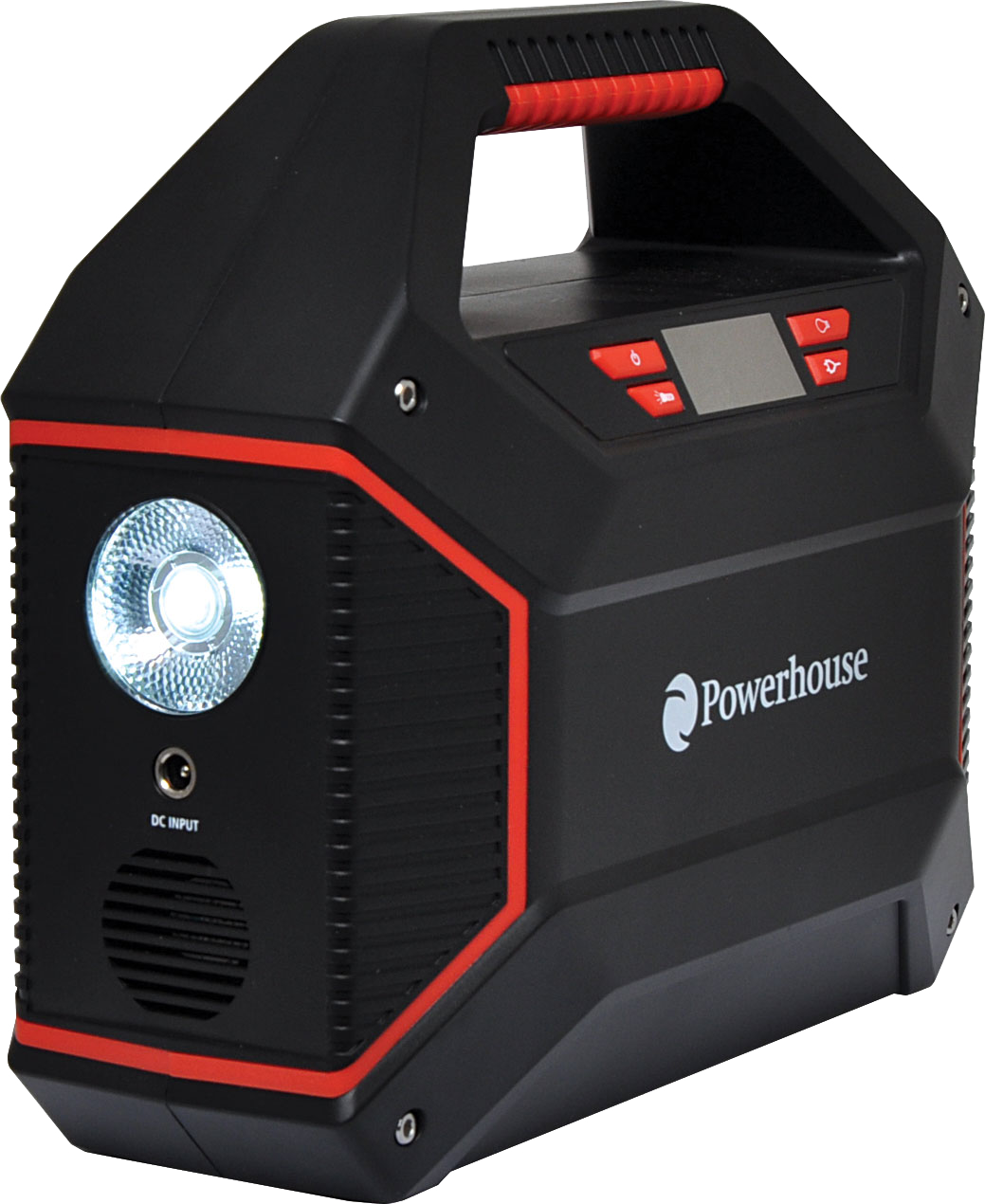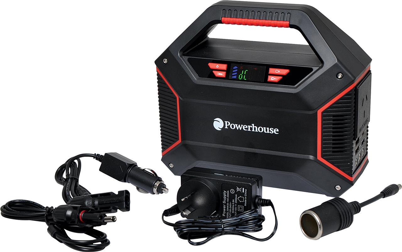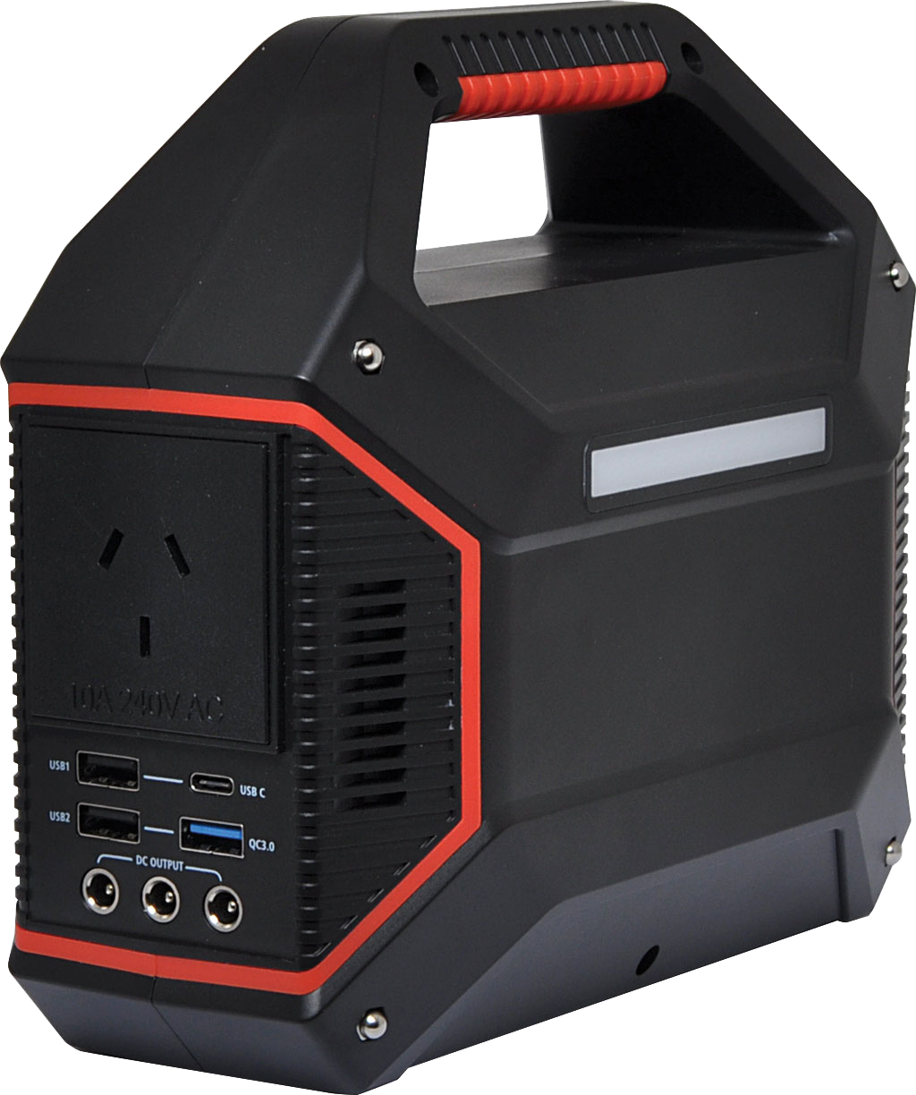 A complete mobile AC/DC power solution designed to be recharged via solar panels with in-built MPPT charging circuit. Includes 100W modified sine wave inverter for AC power when away from mains. Plus, 6A total USB output (Type C & QC3.0) & 180W DC 12V (via 2.1mm DC jacks) for powering appliances & devices. It can also shed some light where you need it with a super bright front mount torch and side mount LED reading light. Features a host of protection features including short circuit, over-current, over-load, low voltage & over temperature. Includes car charger, mains power supply, car accessory socket adaptor & MC4 solar panel adaptor. Size: 195W x 171H x 90Dmm.