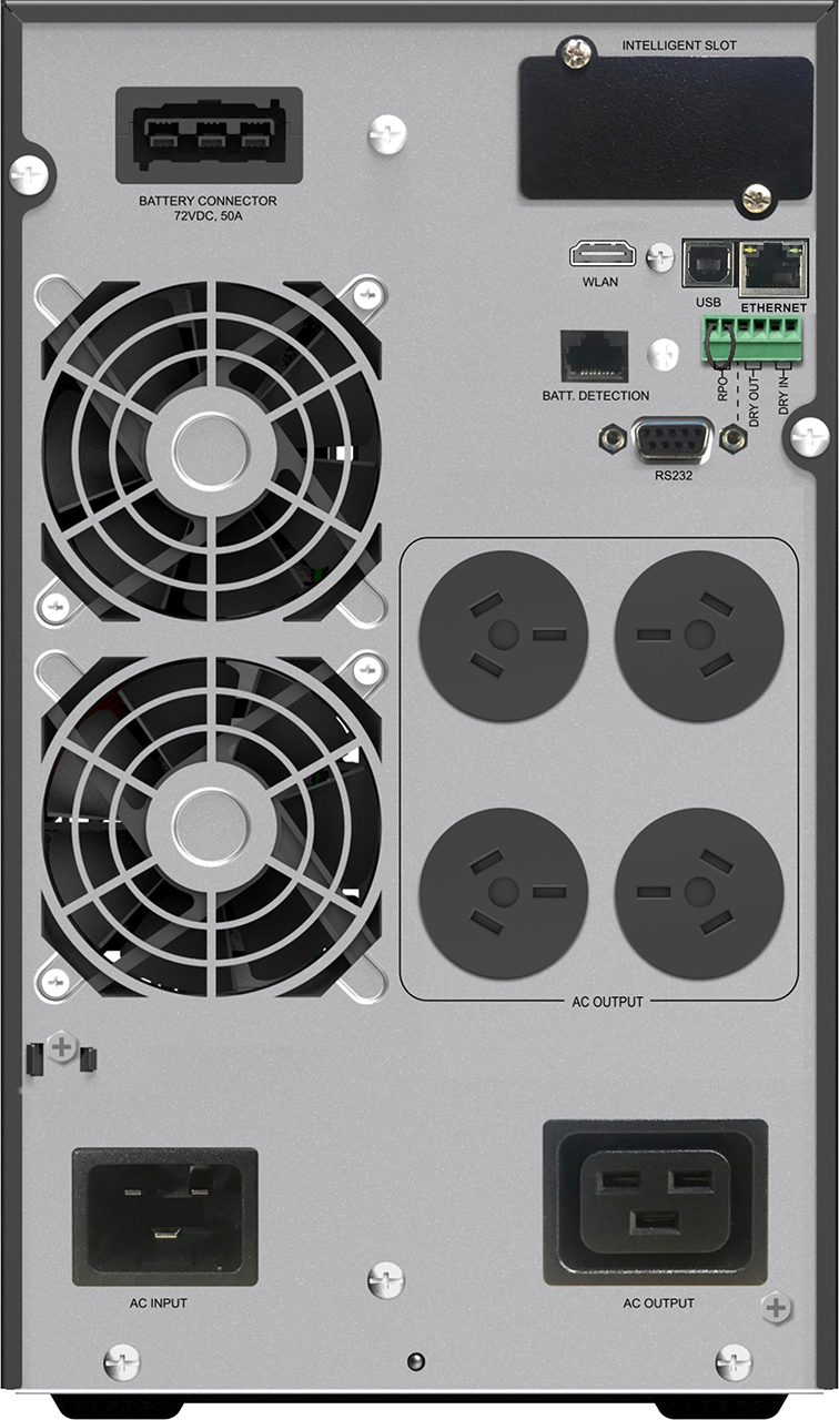 • True On-Line Double Conversion,Active isolation from street mains and re-generation of sine wave output provides the cleanest and reliable power for your must not fail equipment. Emergency internal static bypass will ensure that the street mains is effectively managed.
