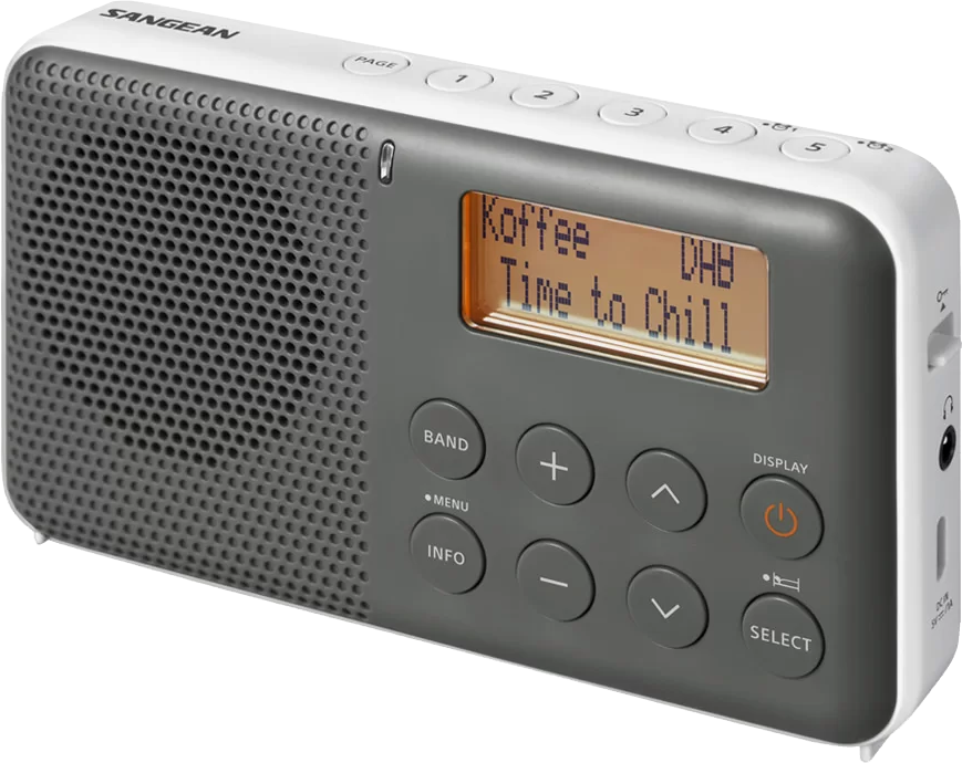 The handheld radio receives DAB and FM. On the easy-to-read display, you can also find the signal strength indicator.