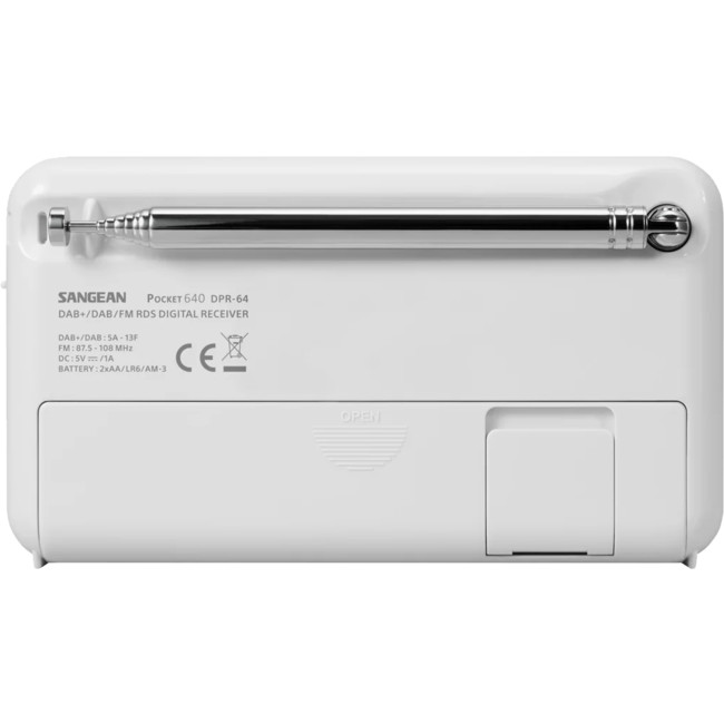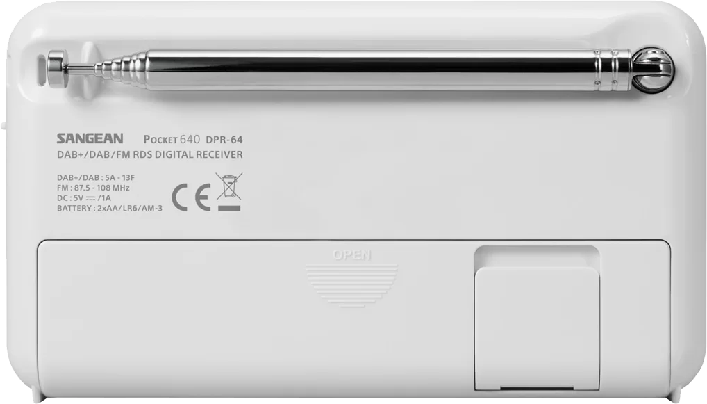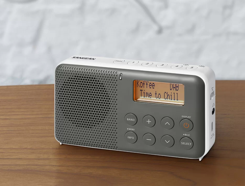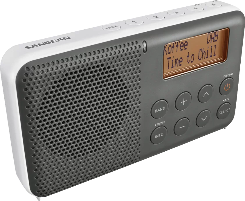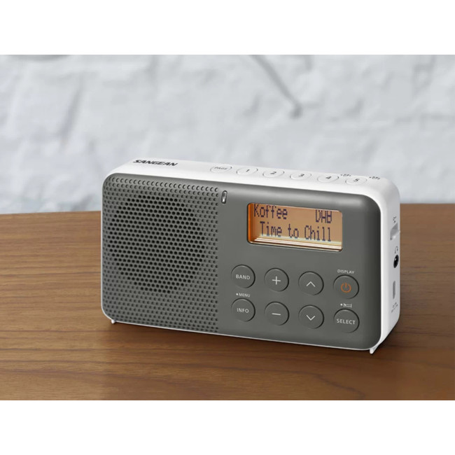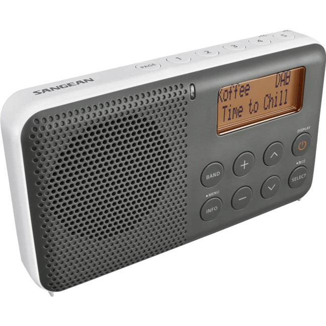 The handheld radio receives DAB and FM. On the easy-to-read display, you can also find the signal strength indicator.
