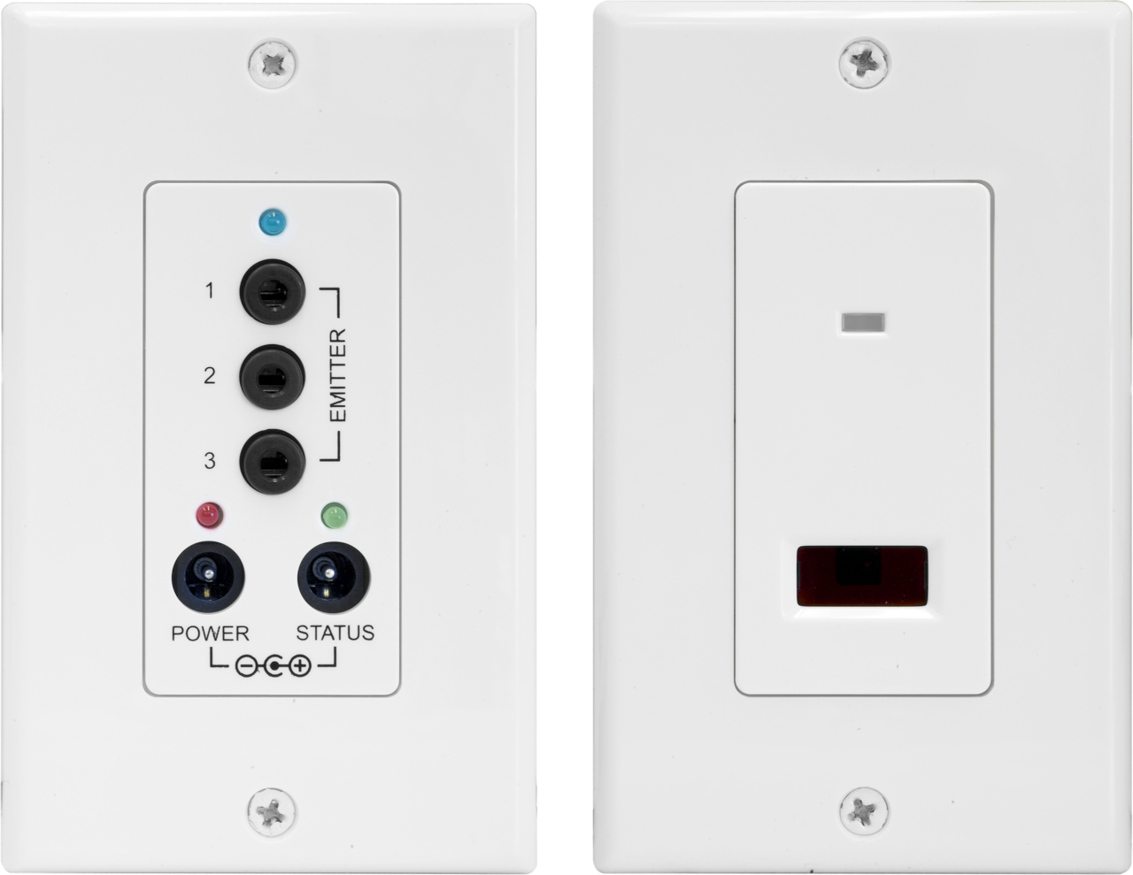 With this setup, you are able to remotely control AV devices in different locations. Wall plates mount to a standard signle gang electrical box using deco cover plates.